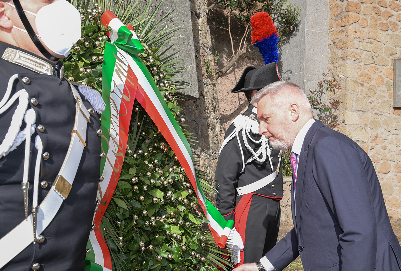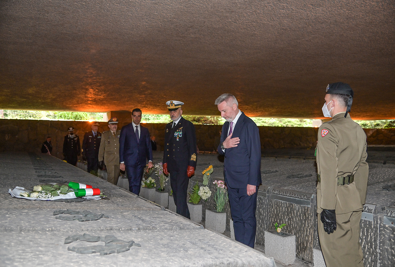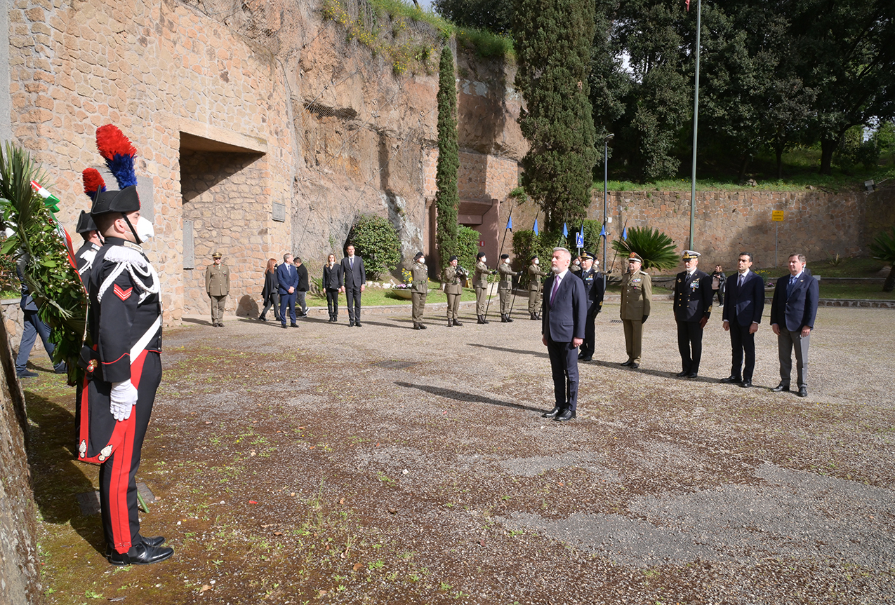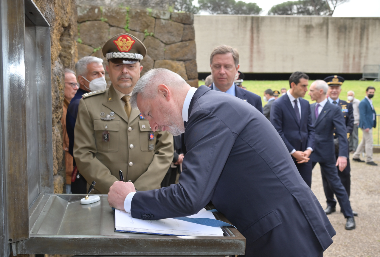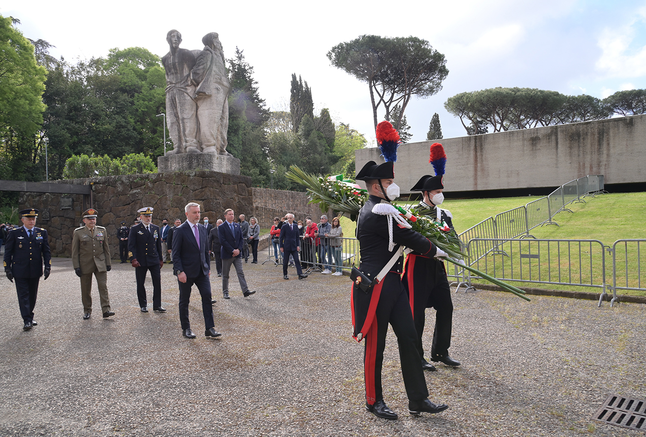 A seguire, il Ministro Guerini accompagnato dal Capo di Stato Maggiore della Difesa, Ammiraglio Giuseppe Cavo Dragone, ha deposto una corona di alloro in omaggio alle vittime dell’eccidio delle Fosse Ardeatine.