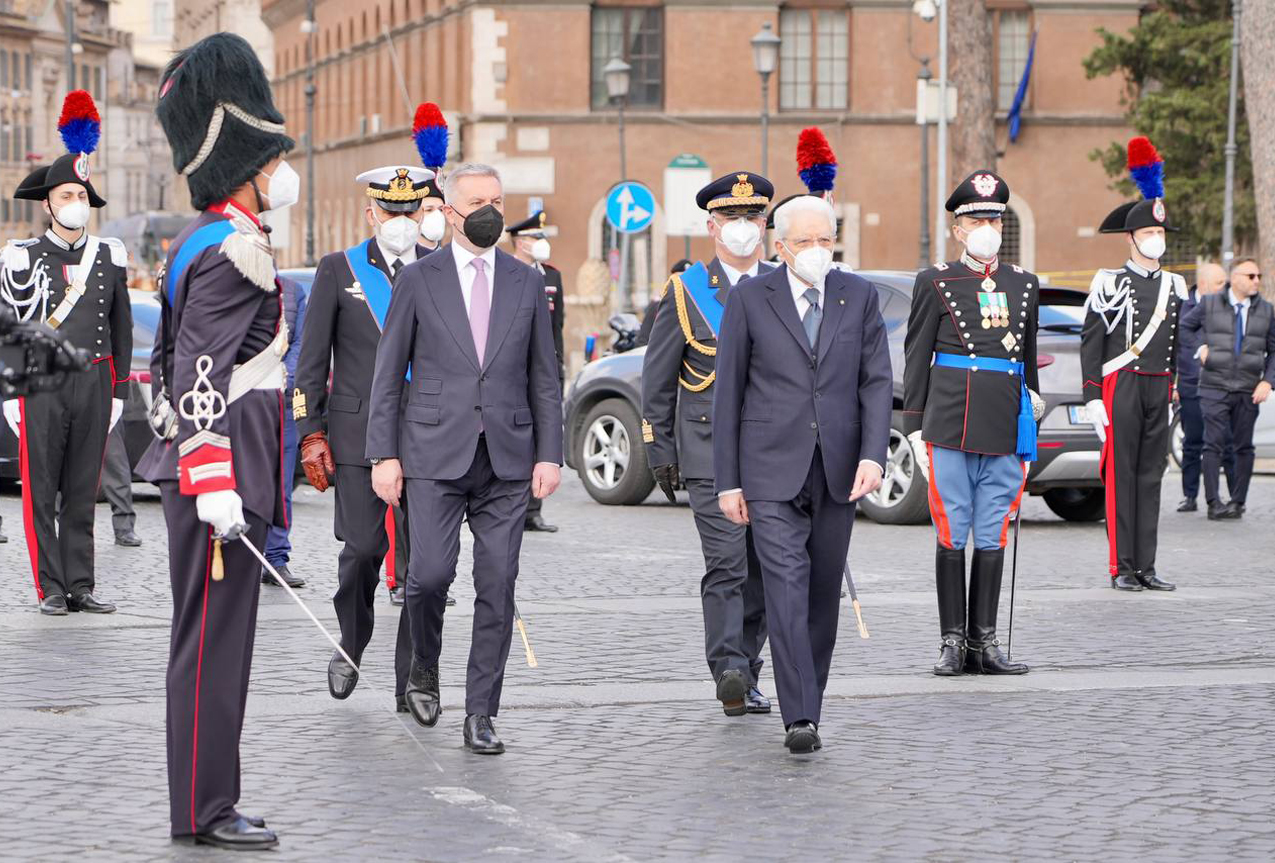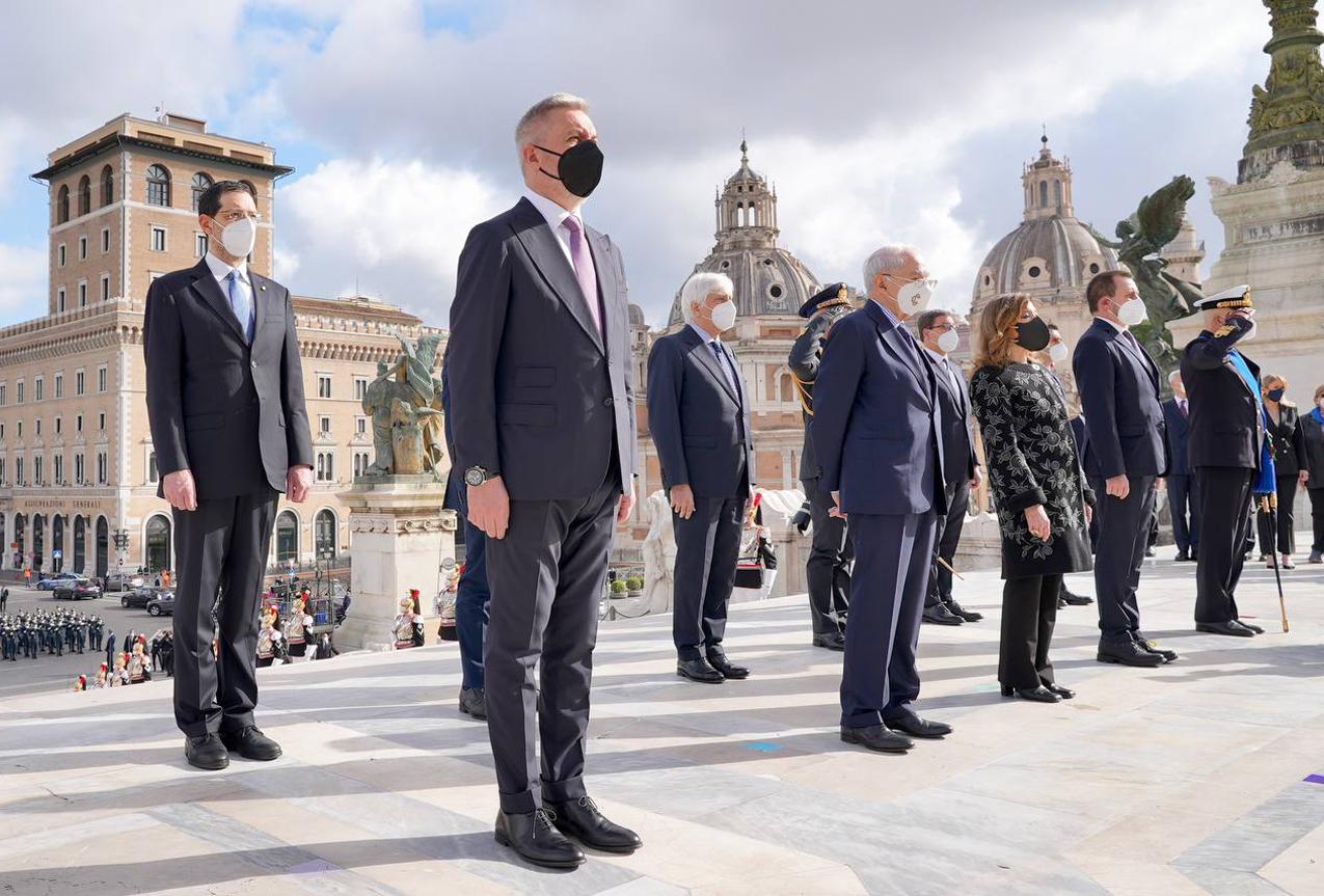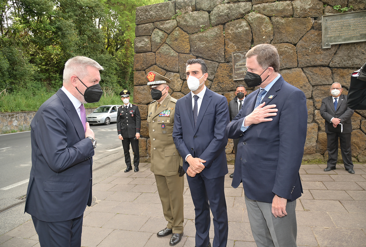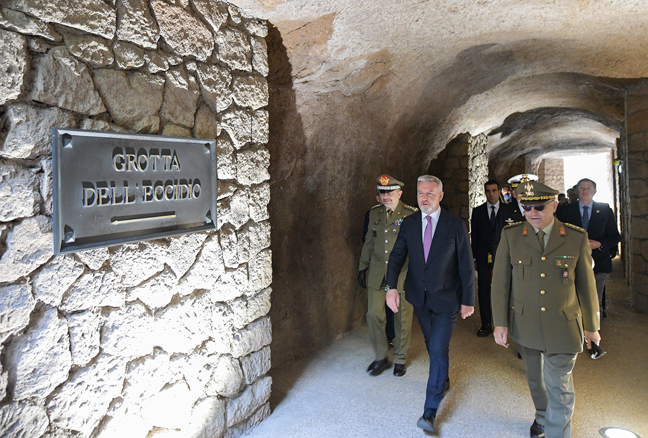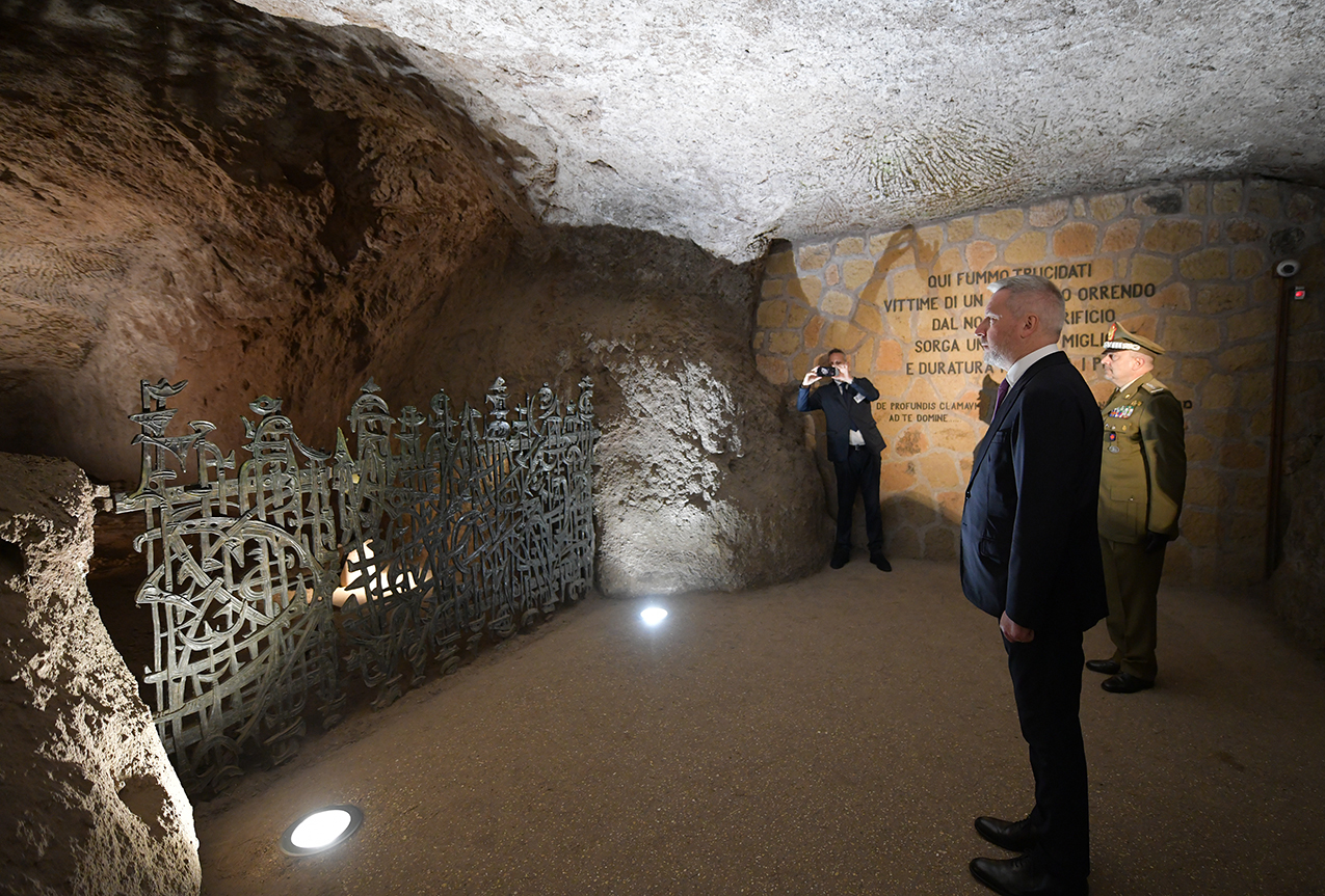 A seguire, il Ministro Guerini accompagnato dal Capo di Stato Maggiore della Difesa, Ammiraglio Giuseppe Cavo Dragone, ha deposto una corona di alloro in omaggio alle vittime dell’eccidio delle Fosse Ardeatine.