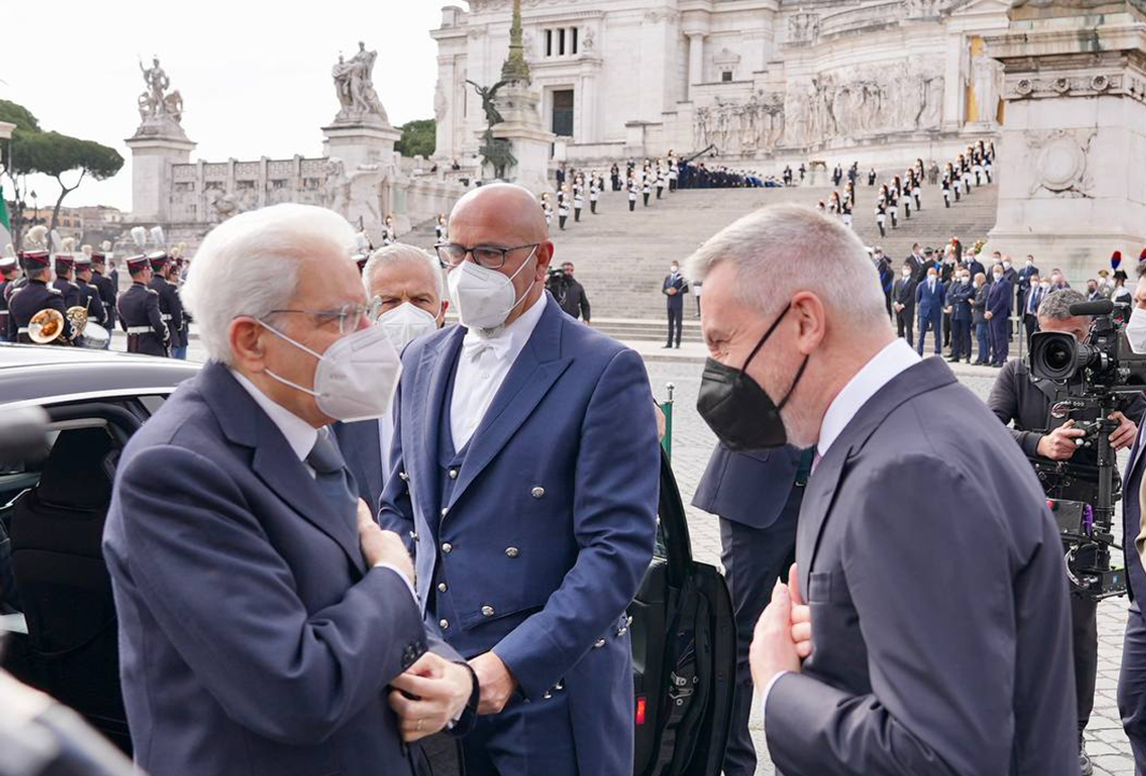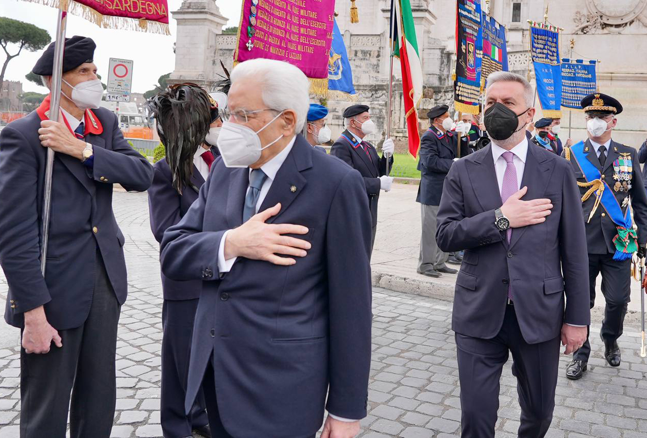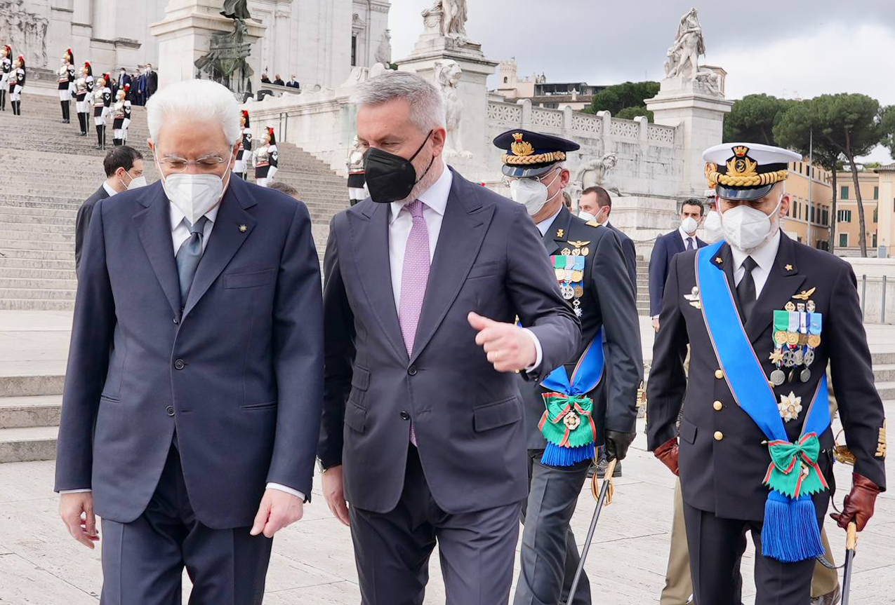 In occasione delle celebrazioni del 77° anniversario della Liberazione, il Presidente della Repubblica, Sergio Mattarella, accompagnato dal Ministro della Difesa, Lorenzo Guerini, ha deposto una corona di alloro all’Altare della Patria.