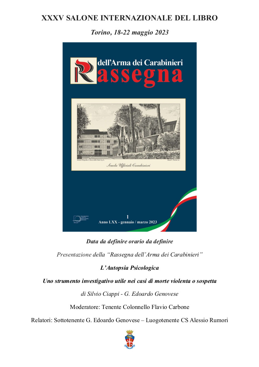 Ore 12:30 Carabinieri: "L'Autopsia Psicologica: uno strumento investigativo utile nei casi di morte violenta o sospetta"