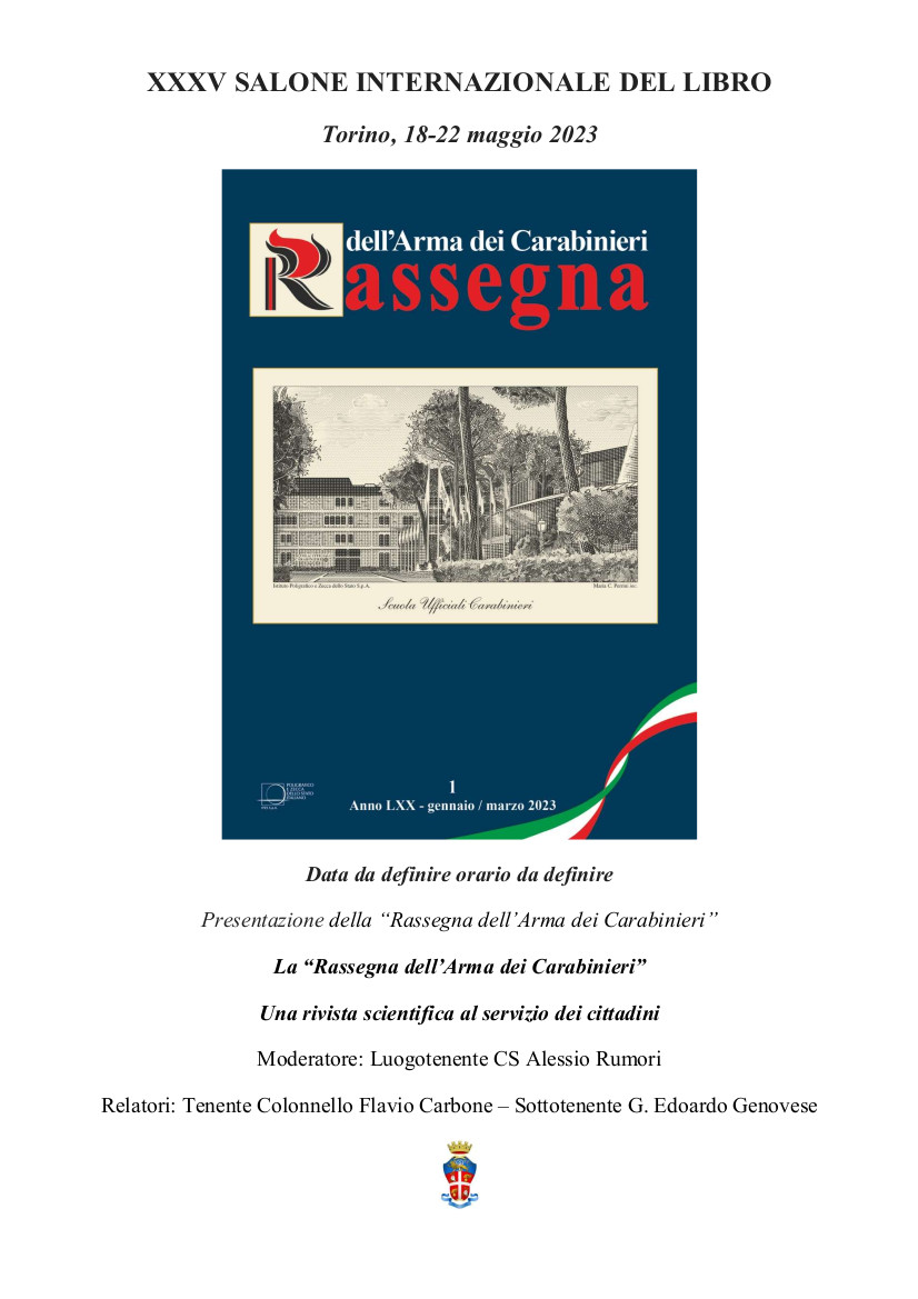 Ore 18:30 Carabinieri: presentazione "Rassegna dell'Arma dei Carabinieri", una rivista scientifica al servizio dei cittadini