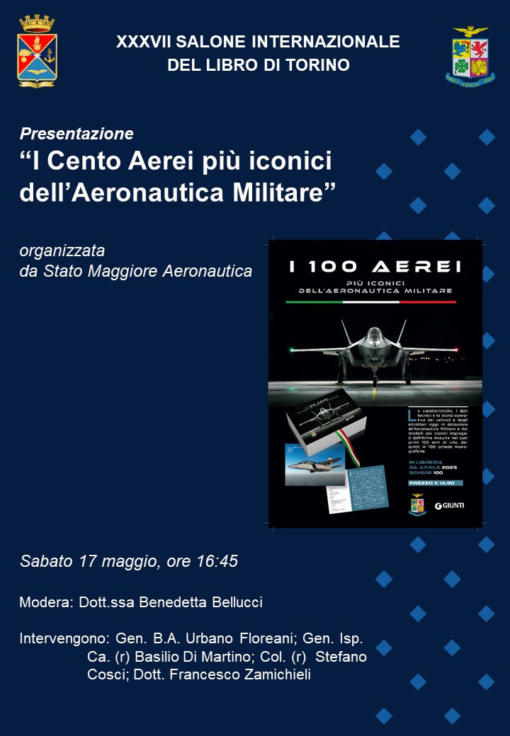 Ore 16:45 Aeronautica Militare : Presentazione del volume "I 100 aerei più iconici dell’Aeronautica Militare"