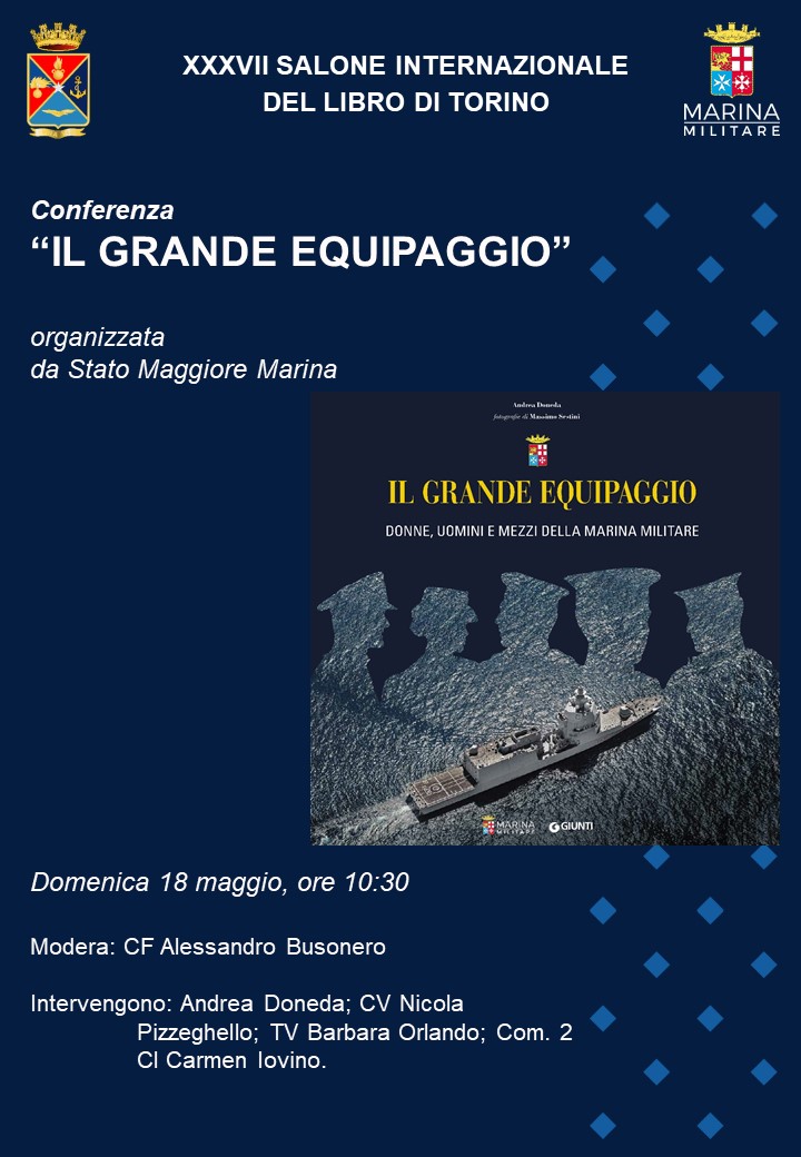 Ore 10:30 Marina Militare : Conferenza "Il grande Equipaggio" - Racconto delle donne, degli uomini e dei mezzi della Marina Militare