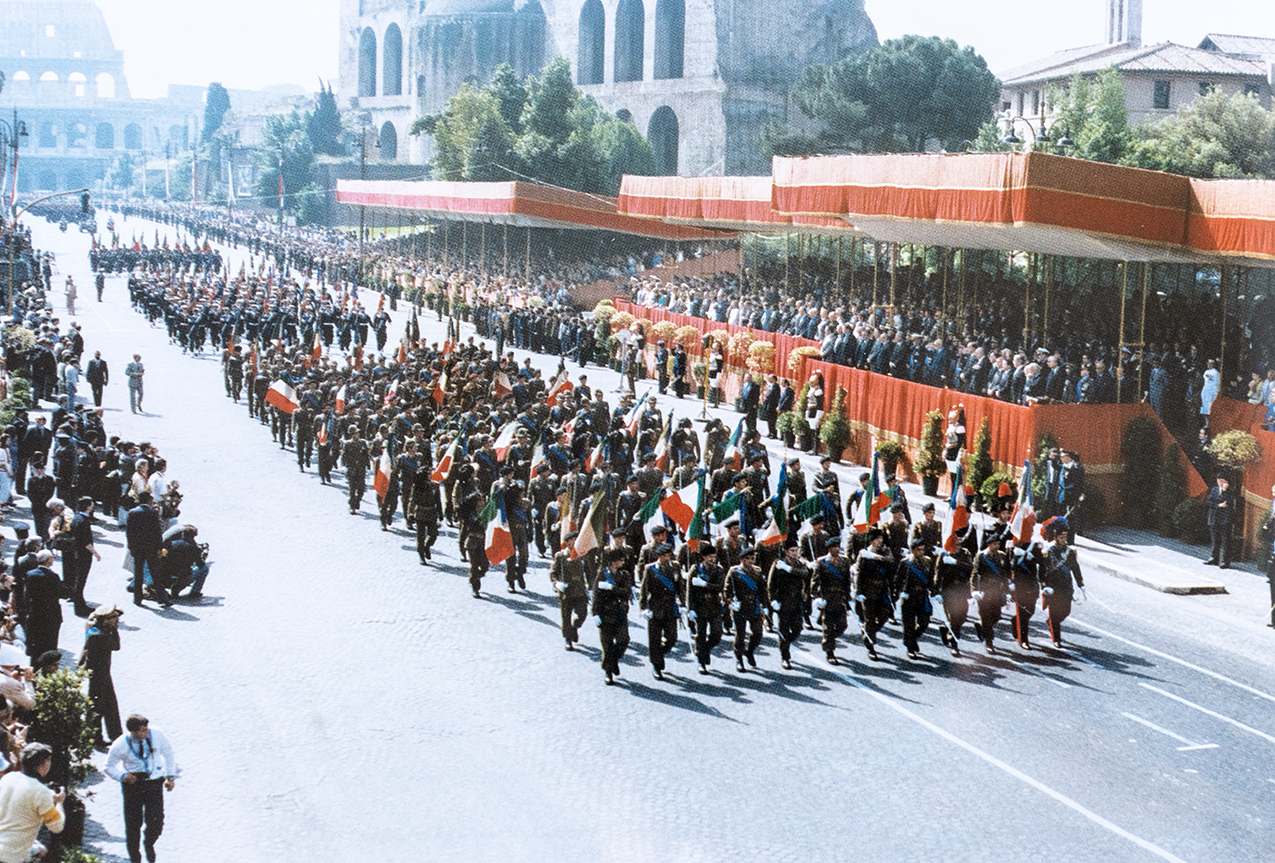 Nel 1950, invece, per la prima volta la parata fu inserita nel protocollo delle celebrazioni per la Festa della Repubblica e, nel 1961, centenario dell'Unità, si svolse anche a Torino e Firenze, prime Capitali dell'Italia unita.