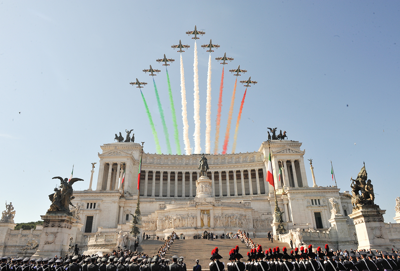 In quel 2 giugno, le Forze Armate divennero strumento di quel sentimento, con una dimensione tangibile: uno schieramento interforze di fronte all'Altare della Patria.