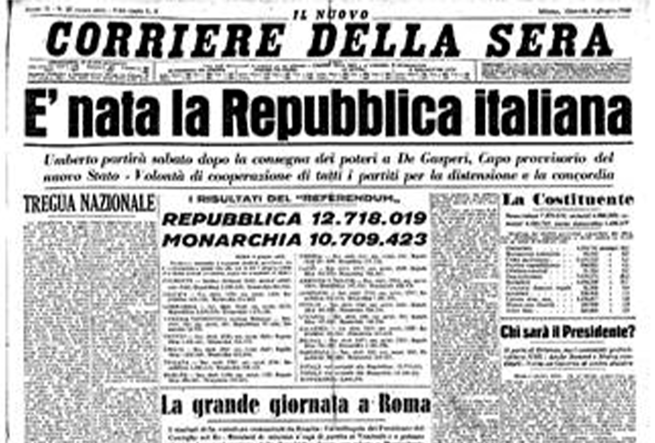 L’Italia cessava di essere una monarchia e diventava una Repubblica.