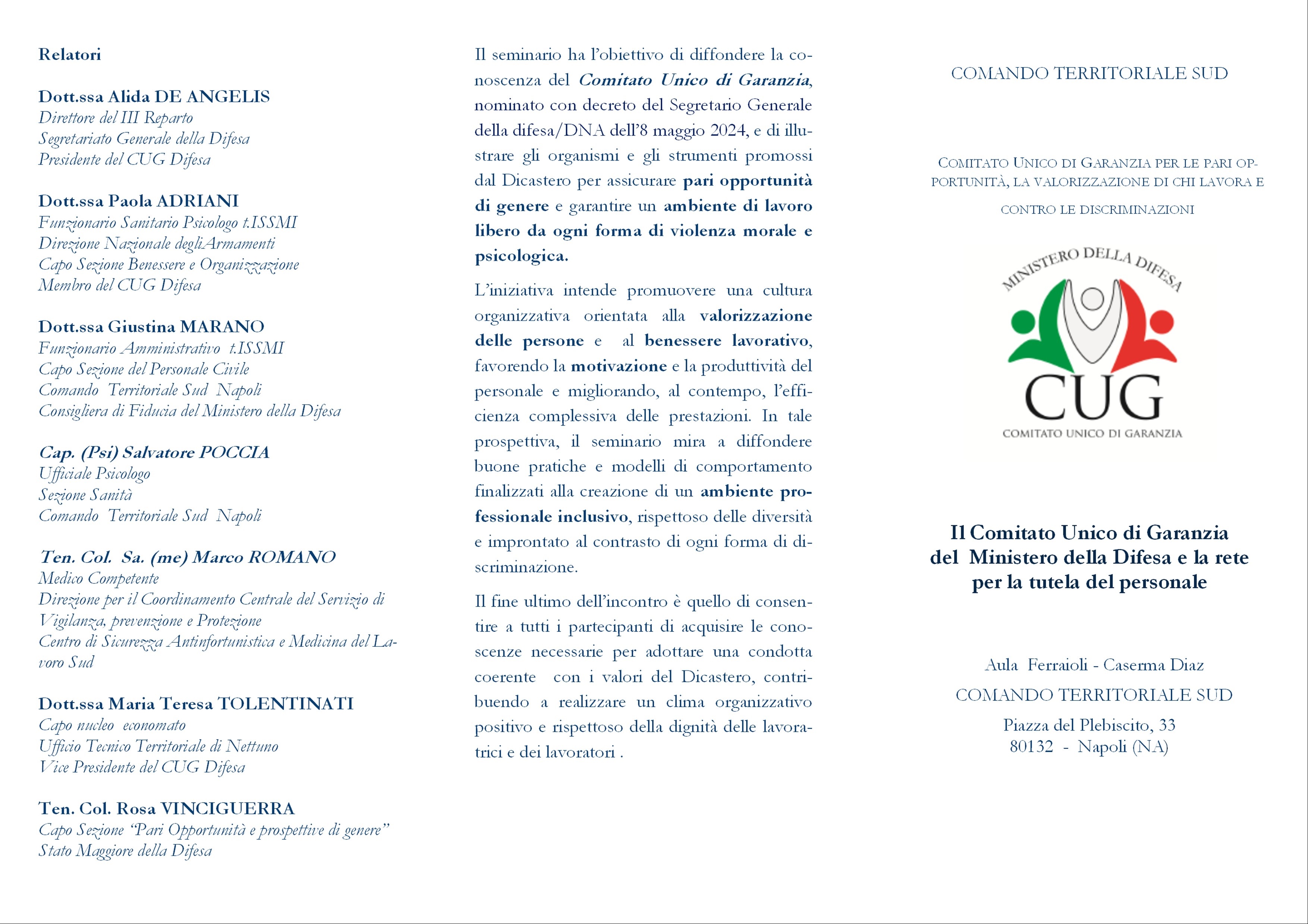 Il 28 ottobre 2025, presso il Comando Territoriale Sud di Napoli si è svolto il seminario di formazione “Il Comitato Unico di Garanzia del Ministero della Difesa e la rete per la tutela del personale”.