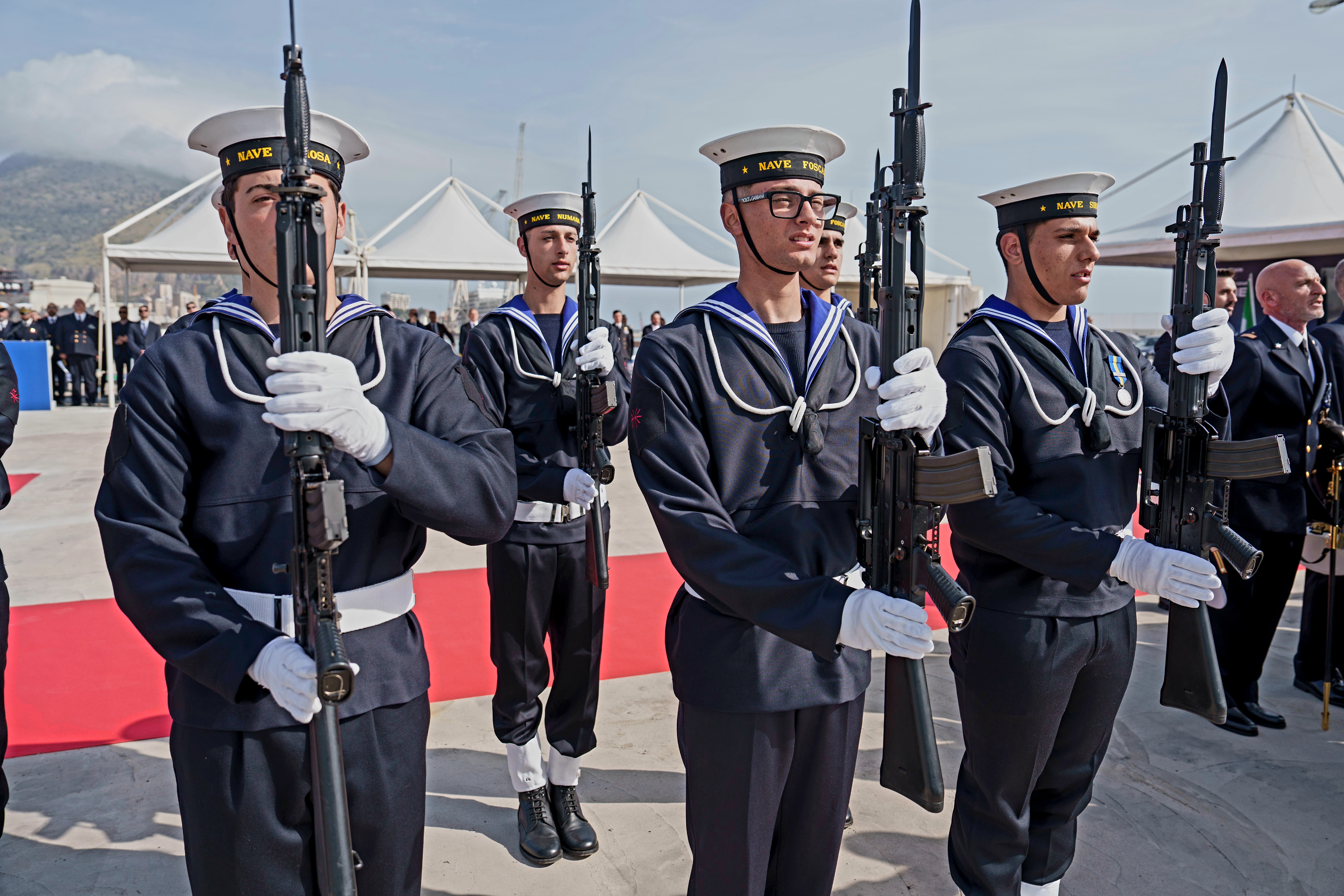 Alla cerimonia hanno preso parte l’Ammiraglio di Squadra Vincenzo Montanaro, comandante del Comando Logistico della Marina Militare, l’Ammiraglio Ispettore Capo Cristiano Nervi, direttore di NAVARM, l’Ammiraglio Cristo Salvatore Traetta, comandante della Quinta Divisione Navale e presidente della Commissione di verifica di conformità e accettazione, oltre al dottor Gabriele Maria Cafaro, Executive Vice President di Fincantieri.