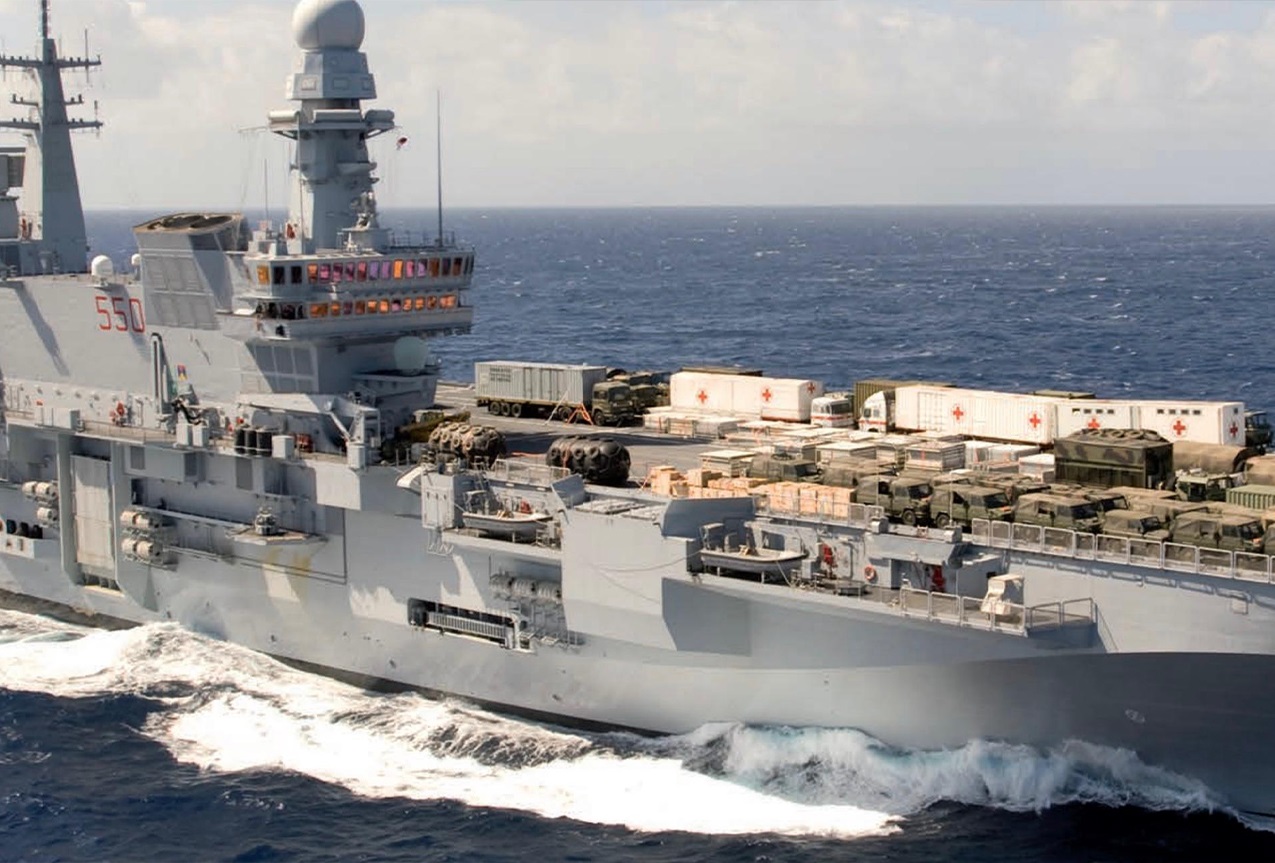 La Défense a participé à l'effort international avec un contingent militaire interarmées dans le cadre de la mission humanitaire « White Crane » : le porte-avions Cavour a été rapidement mobilisé pour rejoindre Haïti, se transformant en une plateforme de secours concrète, capable d'acheminer rapidement des vivres et des fournitures essentielles, notamment vers les zones isolées et coupées des principaux axes de communication.