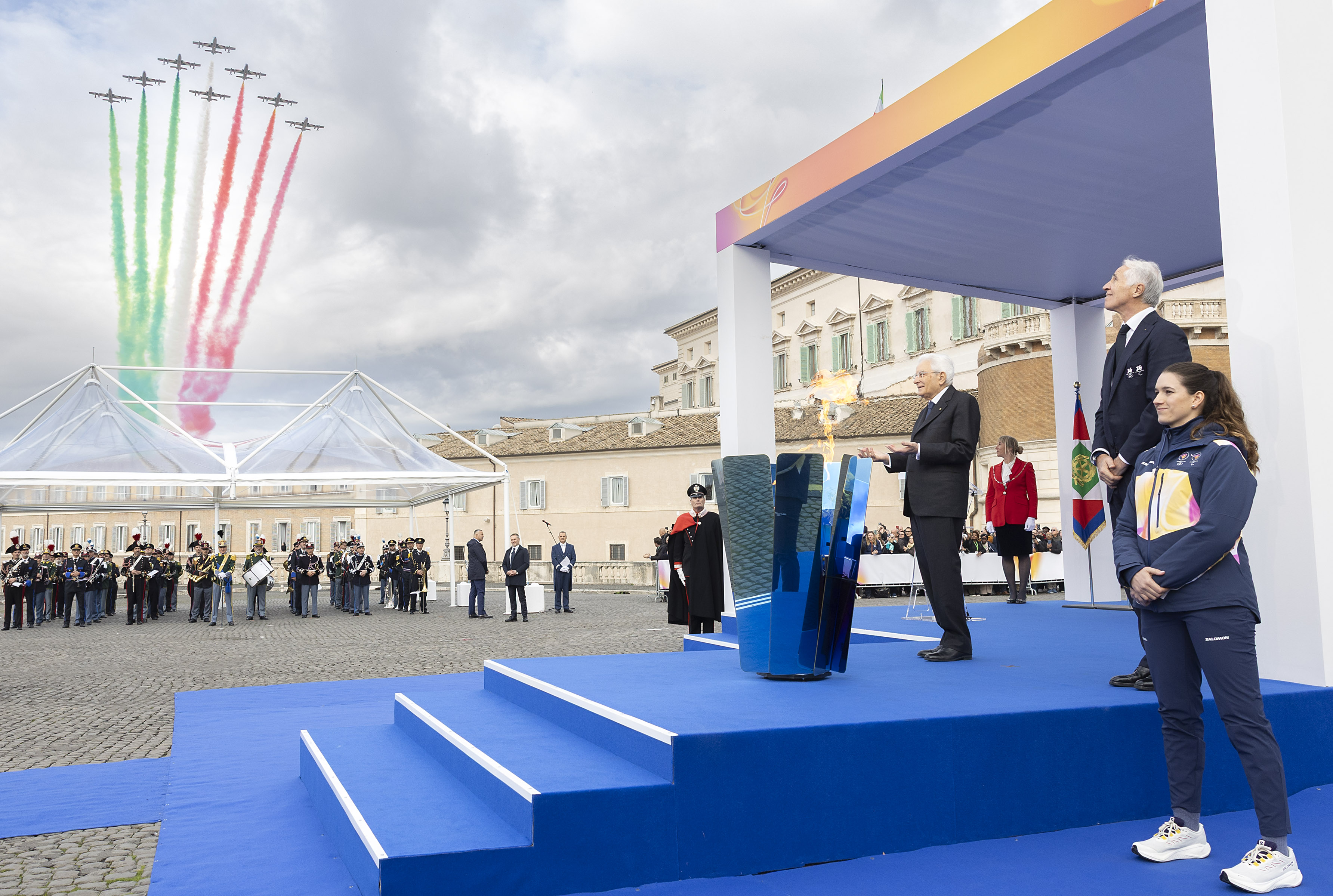 Ce matin, la cérémonie d'inauguration du relais de la flamme olympique s'est déroulée sur la place du Quirinal. Le président de la République Sergio Mattarella a allumé avec la flamme olympique la vasque des Jeux Olympiques de Milan-Cortina 2026.