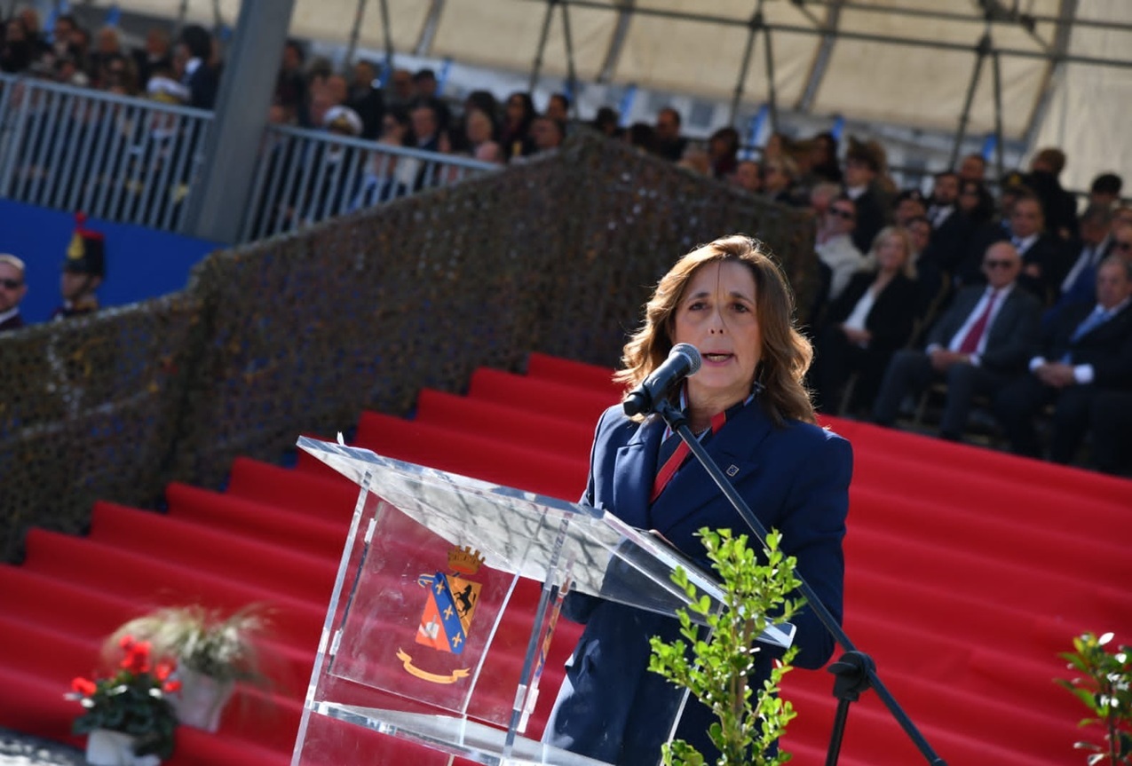 Après avoir transmis les salutations du gouvernement et du ministre de la Défense, Mme Rauti, chargée de la formation, s'est adressée aux élèves : « Vous avez choisi d'intégrer une école militaire pour vous mettre à l'épreuve : vous deviendrez des femmes et des hommes qui ne se laisseront pas submerger par les événements, mais qui façonneront l'avenir en maîtrisant leurs actions ».
