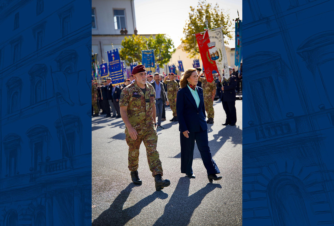 « Chaque année, nous commémorons l'héroïsme de la division Folgore lors de la bataille d'El Alamein en 1942 et renouvelons notre engagement à préserver et à transmettre une mémoire dynamique et idéale » a dit la sous-secrétaire d'État à la Défense Isabella Rauti, qui aujourd'hui a été nommée parachutiste honoraire à l'occasion du 83° anniversaire et de la fête des parachutistes. Elle était accompagnée du chef d'état-major de l'armée de Terre, général de corps d’armée Carmine Masiello.