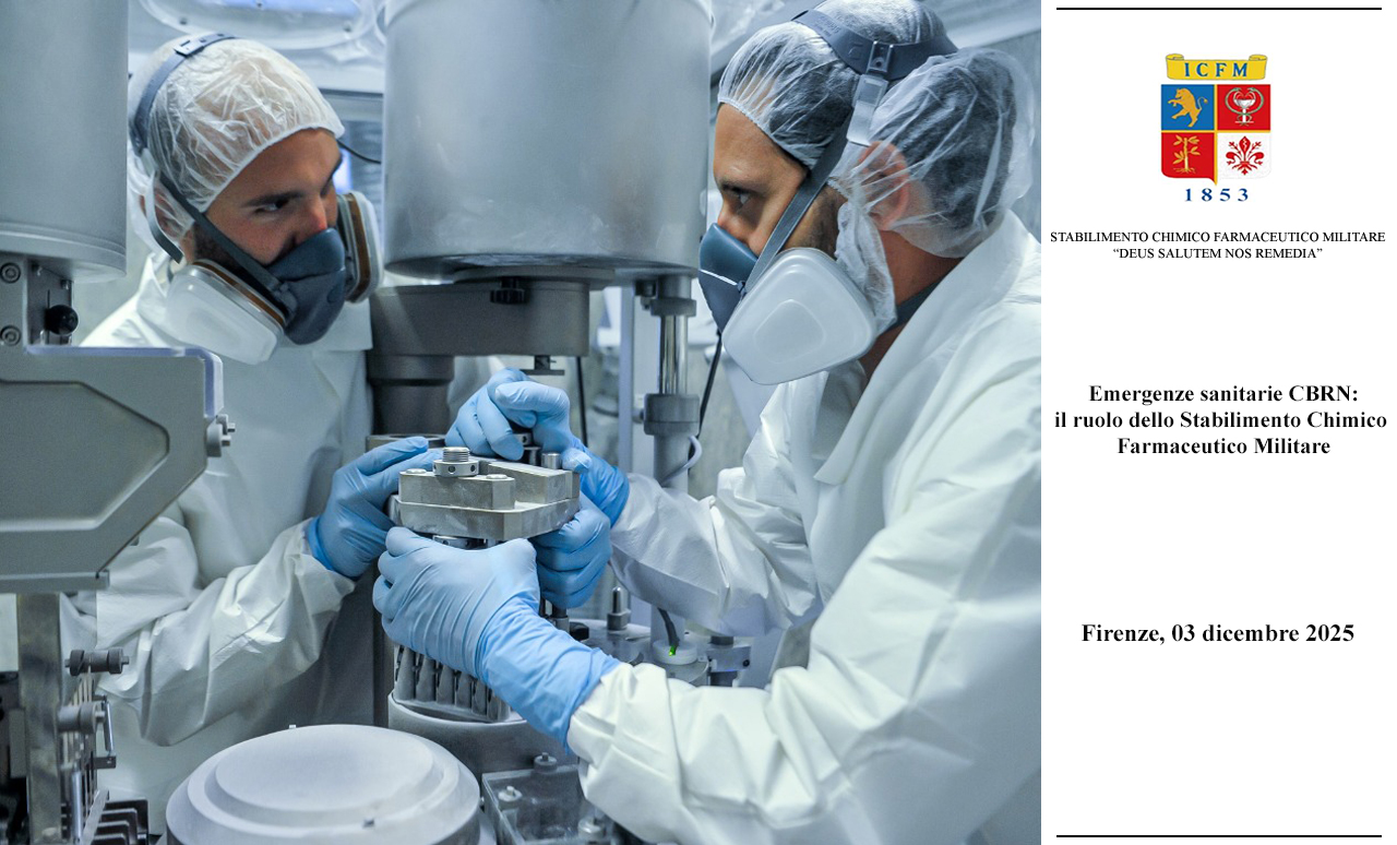 Il prossimo 3 dicembre 2025, dalle 09:30 alle 18:30, si terrà a Firenze, nella prestigiosa Sala del Cenacolo della Caserma Simoni (via della Scala 60/c), l’evento ECM dal titolo “Emergenze sanitarie CBRN: il ruolo dello Stabilimento Chimico Farmaceutico Militare”.