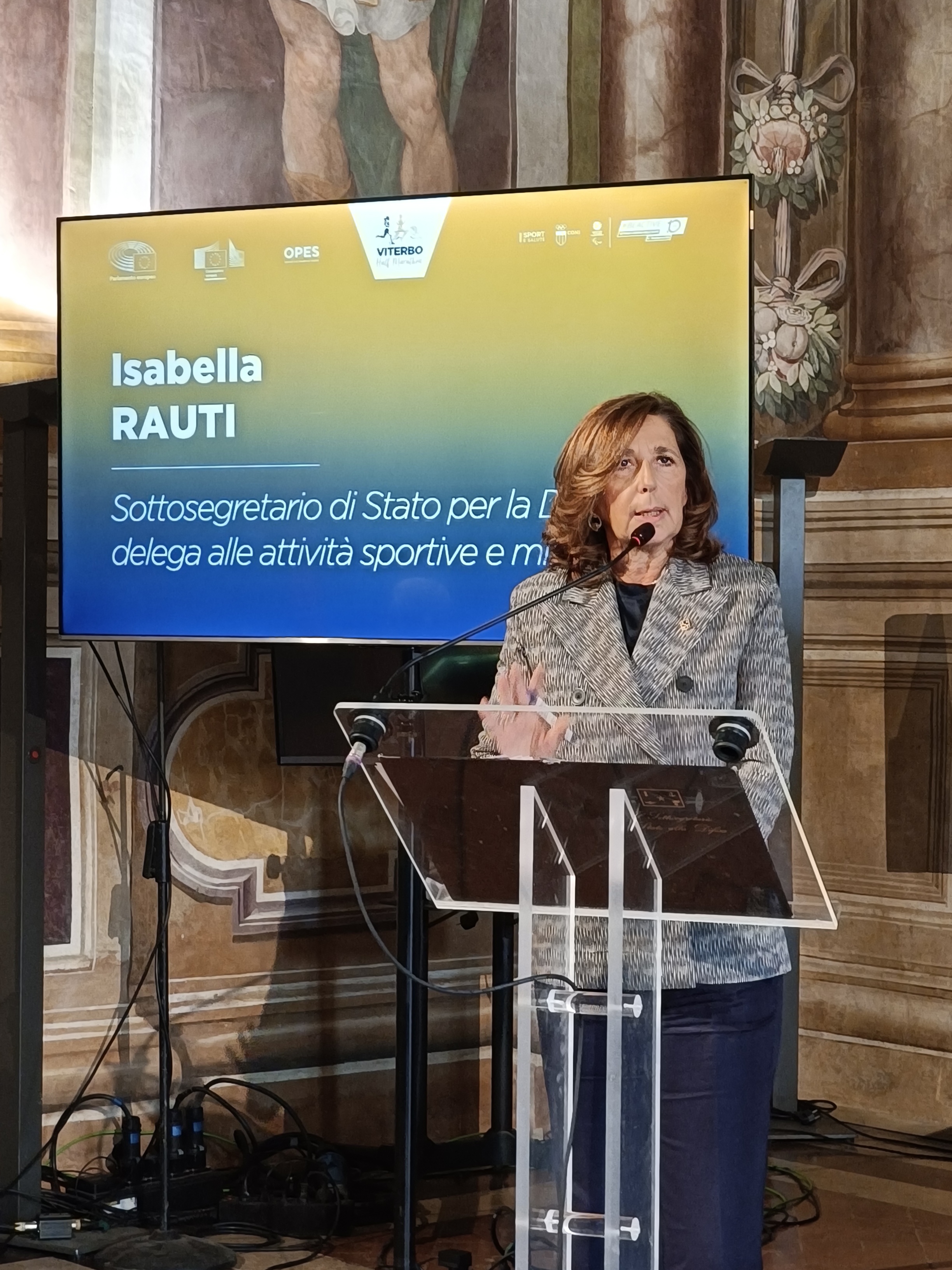 "La Viterbo Half Marathon è un inno all'inclusione, allo sport come motore di inclusività, di aggregazione e coesione sociale. Promuove senso di appartenenza, valorizza il territorio, rafforza il senso di identità locale, in direzione 'glocal': locale, europeo, globale", così a Viterbo il Sottosegretario di Stato alla Difesa, senatrice Isabella Rauti - con delega alle attività sportive delle Forze Armate - al convegno "Facciamo sport per l'inclusione", organizzato in occasione della settimana europea dello sport.