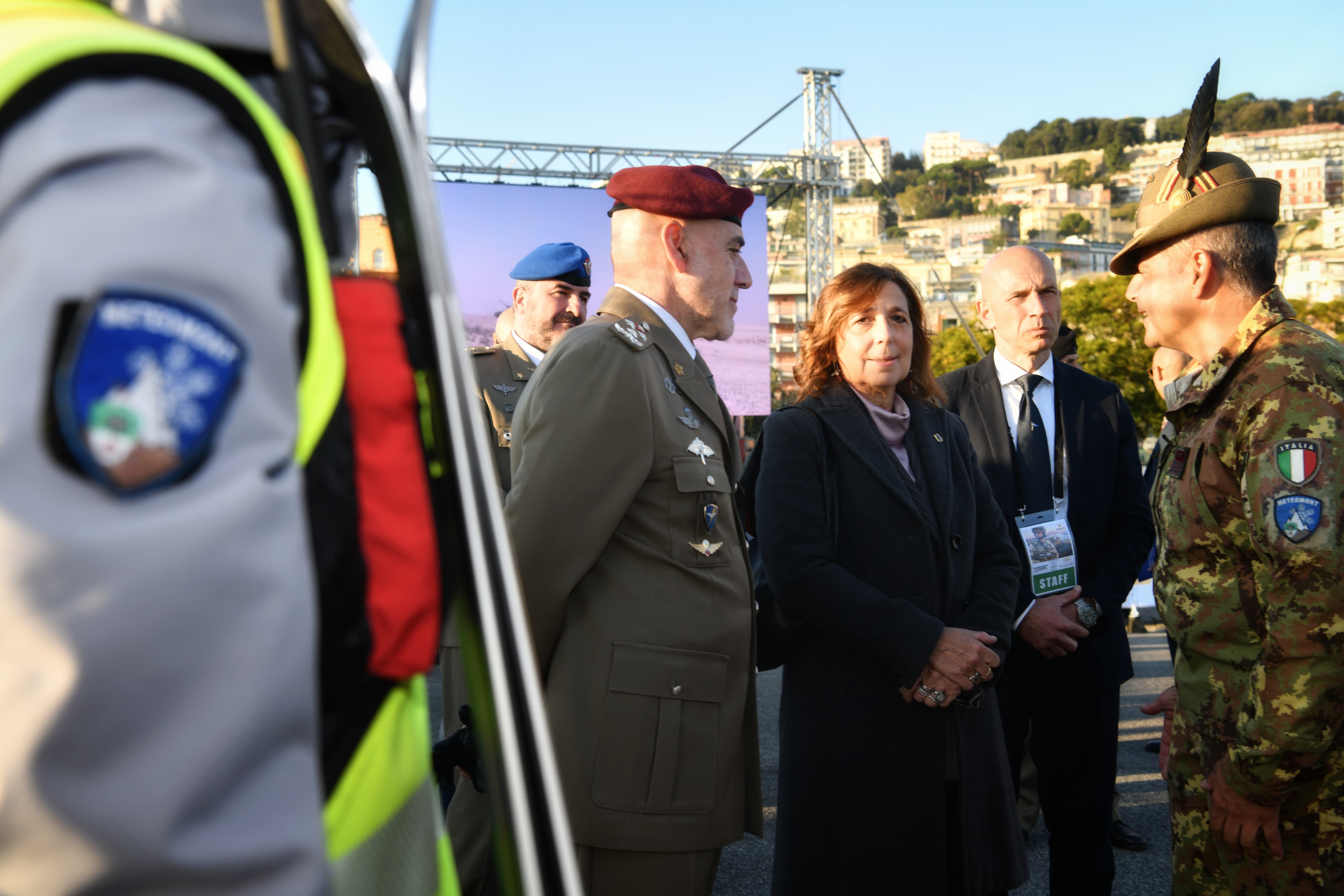 "L' Esercito omaggia Napoli per i suoi 2500 anni di storia", così il Sottosegretario di Stato alla Difesa, Senatrice Isabella Rauti che oggi a Napoli ha visitato il "Villaggio Esercito", accompagnata dal Capo di Stato Maggiore della Forza Armata Gen. C.A. Carmine Masiello. Il lungomare Caracciolo ospita fino a domenica 16 novembre 2025 stand promozionali allestiti dai militari, esposizioni di moderni mezzi da combattimento, droni e simulatori di volo, l'area di military fitness dei Paracadutisti, la palestra di roccia artificiale degli Alpini e tante altre realtà immersive, espressione del mondo dell’Esercito Italiano.