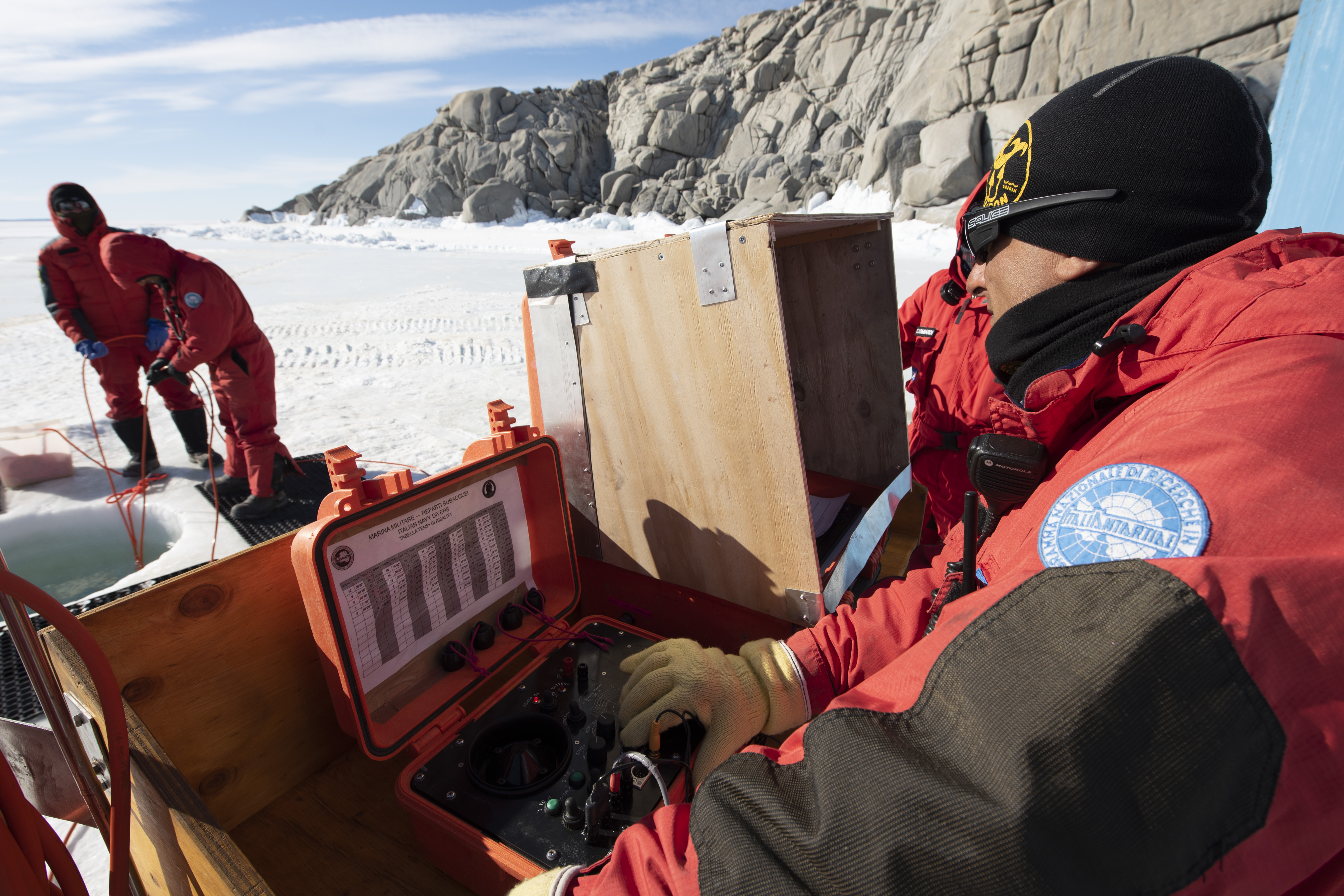 Il team delle Forze Armate che ha svolto attività nella base era costituito da guide alpine, da un coordinatore di sala operativa e da meccanici specializzati dell’Esercito, da incursori e palombari della Marina Militare, da previsori meteo dell’Aeronautica Militare e da un sommozzatore dell'Arma dei Carabinieri per un totale di 26 unità che hanno garantito il supporto alle operazioni logistiche, alle attività di ricerca e di prelievo di campioni in superficie e in mare per lo studio da parte dei ricercatori.