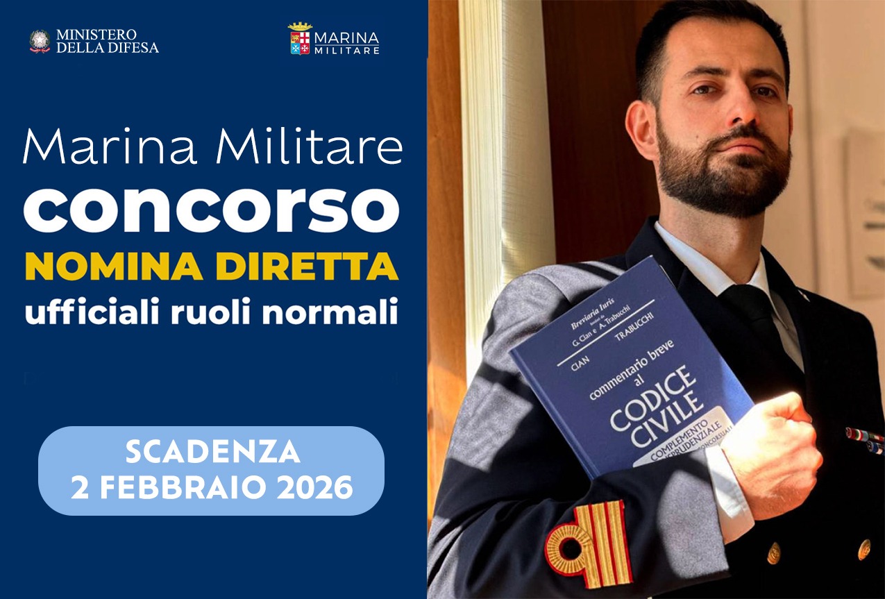 CONCORSI MARINA MILITAREPosti e profilo: 18 (diciotto) Ufficiali in servizio permanente nei ruoli normali della Marina Militare - 2026