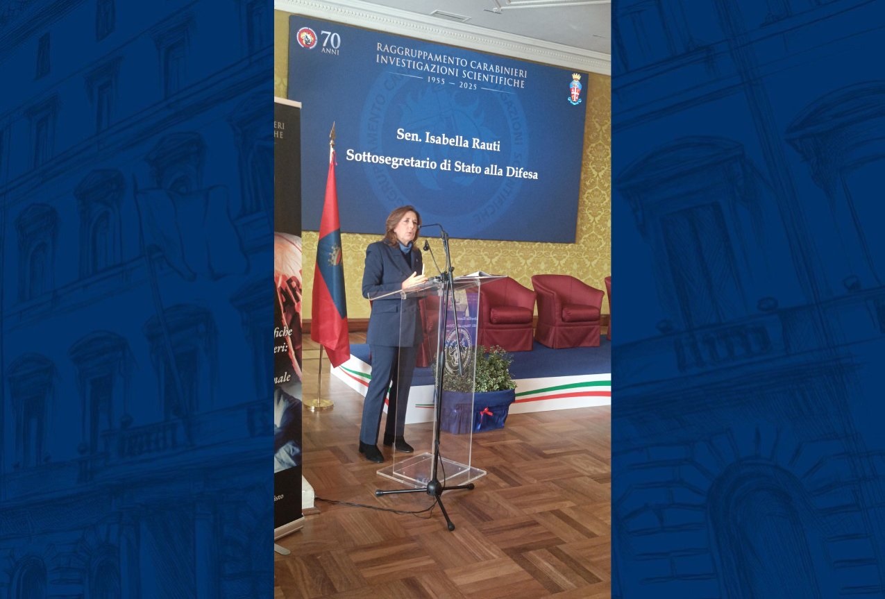 Il Sottosegretario di Stato alla Difesa, Sen. Isabella Rauti, ha partecipato oggi – su delega del Ministro della Difesa Guido Crosetto – alla conferenza “Le investigazioni scientifiche dell'Arma dei Carabinieri: innovazione, cooperazione internazionale e sfide future”, organizzata in occasione del 70° anniversario di fondazione del Raggruppamento Carabinieri Investigazioni Scientifiche (RaCIS), a Roma.