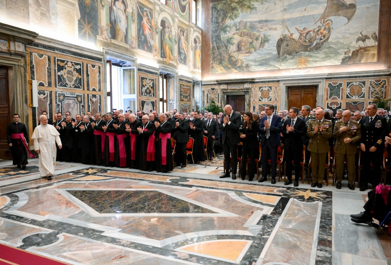 “Il nostro deferente ringraziamento al Santo Padre per aver accolto i Cappellani Militari che, nel corso di questo cammino lungo un secolo, hanno rappresentato e rappresentano una presenza costante e preziosa, fornendo assistenza e sostegno spirituale alle donne e agli uomini della Difesa, e condividendo sia i momenti sereni sia quelli più difficili nel loro servizio a tutela della pace. Come ha ricordato il Santo Padre, il servizio nasce da un amore verso il Paese e soprattutto verso le persone e si traduce in prossimità concreta, specialmente nei luoghi e nelle circostanze in cui maggiori sono le fragilità. Non a caso, per il centenario dell’Ordinariato Militare è stato scelto il motto ’Inter arma, Caritas’, che richiama la missione dei Cappellani Militari: portare carità e assistenza spirituale anche nei contesti più fragili, accompagnando militari e famiglie e testimoniando umanità, fede e servizio alla pace”.