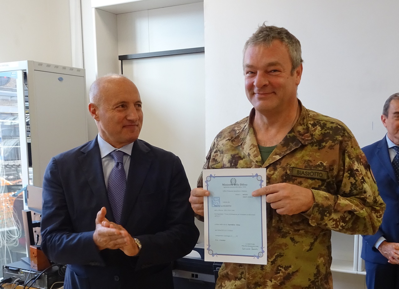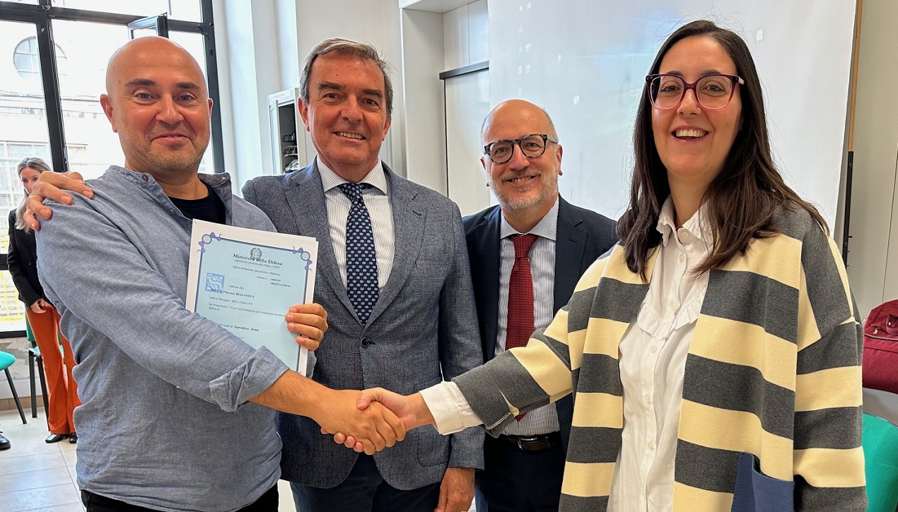 “Formarsi, per poter orientare altri”. Si è tenuta oggi, nella sede dell’Ufficio Formazione Specialistica e Didattica (DIFEFORM) del Segretariato Generale della Difesa (SGD), la cerimonia di chiusura dell’8° Corso per Orientatori Professionali della Difesa, con la consegna degli attestati da parte del Segretario Generale, Consigliere Fabio Mattei, dal Direttore di DIFEFORM, dott. Bernando Leacche, e dal Direttore del I Reparto di SGD, dott. Lorenzo Marchesi. Gli Orientatori, militari e civili della Difesa, si occuperanno di guidare percorsi dedicati ai volontari congedati delle Forze Armate, attraverso attività di formazione e consulenza mirati ad un loro proficuo inserimento nel mondo del lavoro.