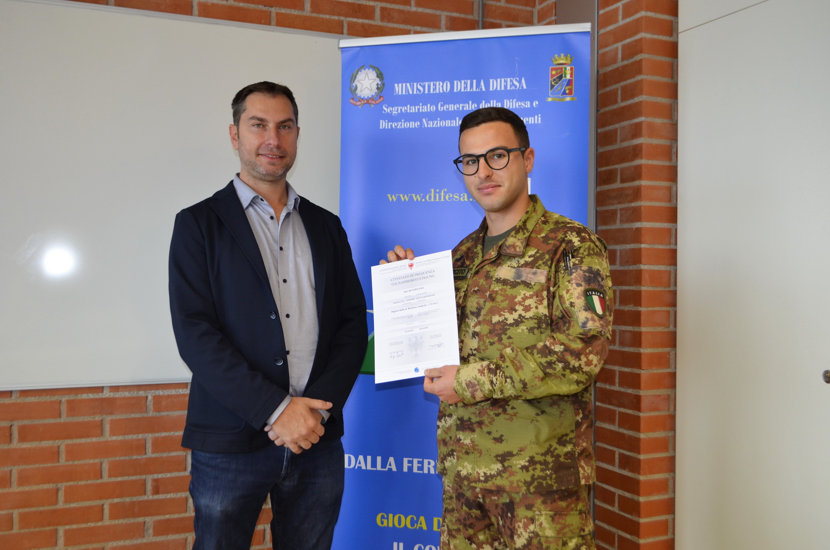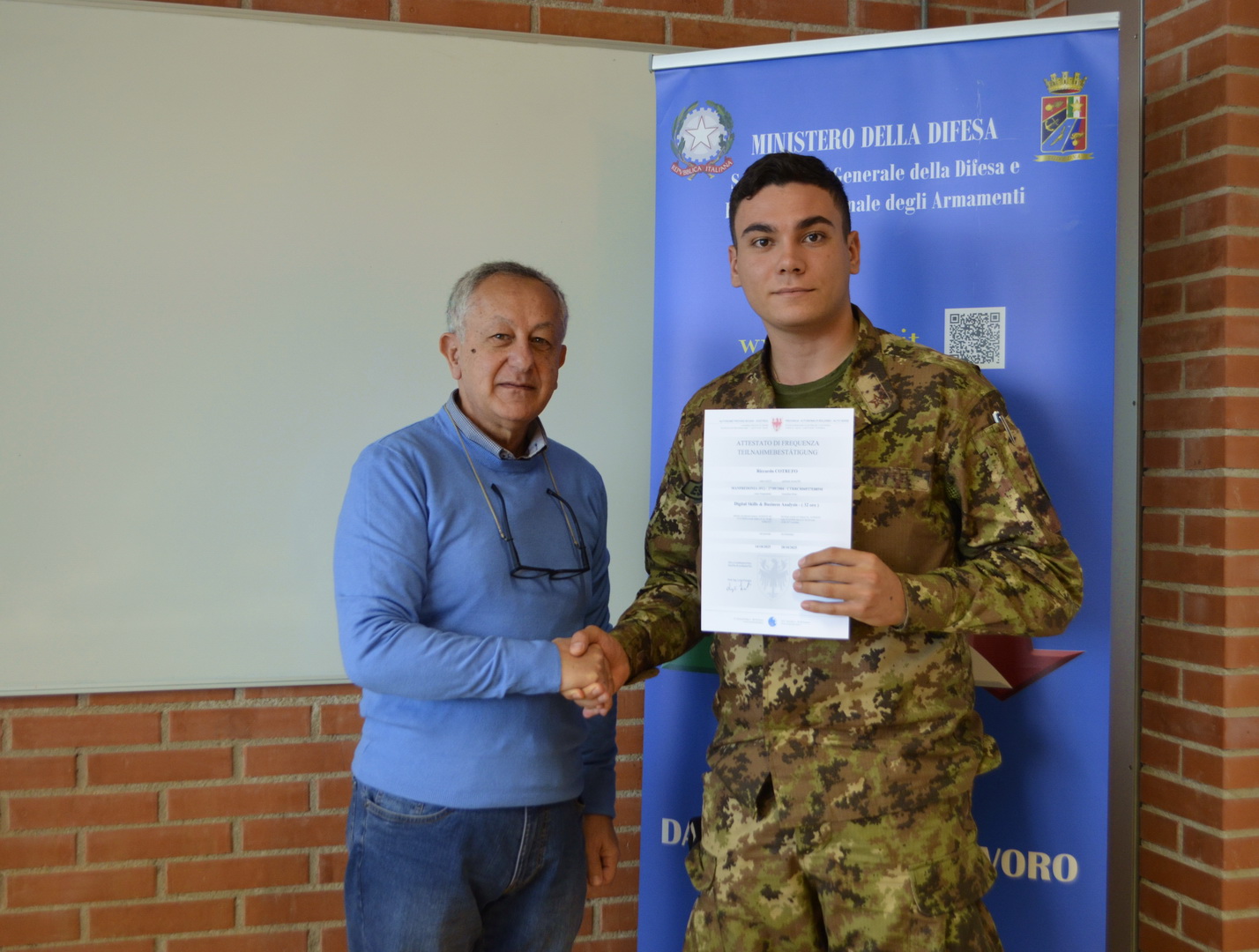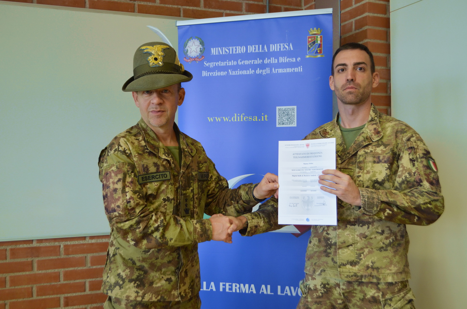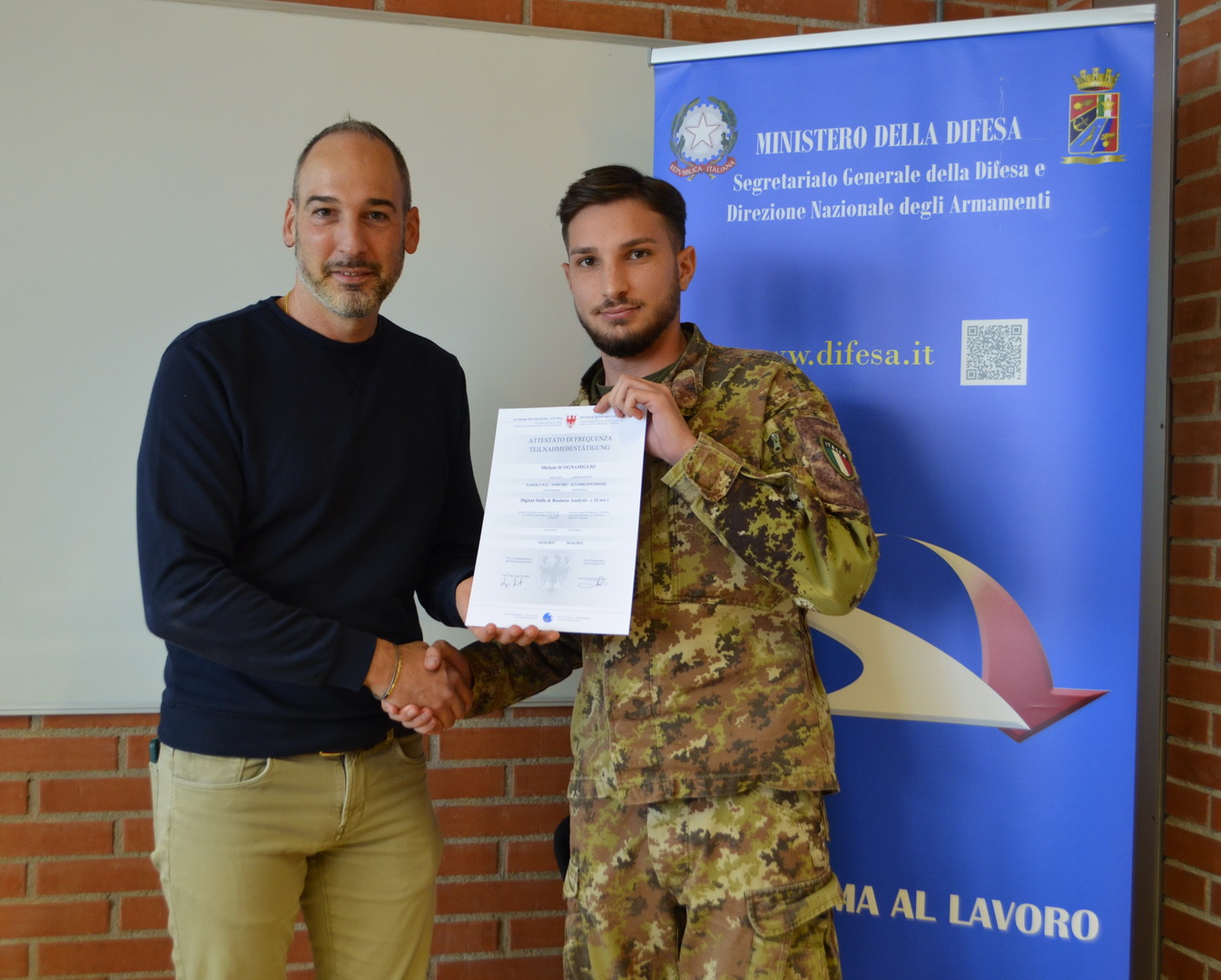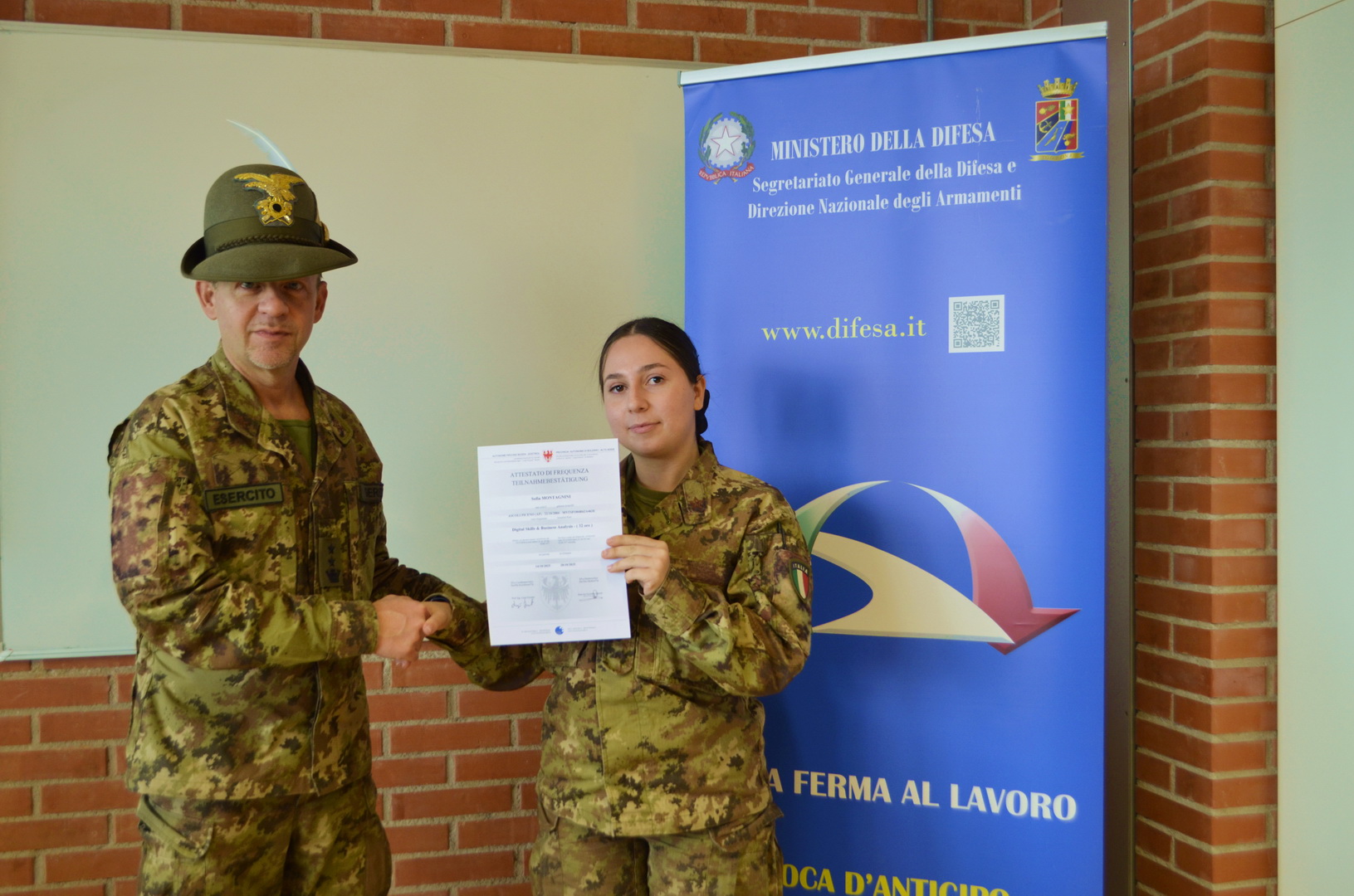 Si è svolta presso la scuola professionale per il commercio, il turismo e i servizi della Provincia Autonoma di Bolzano, la cerimonia conclusiva del corso d'informatica "Digital Skills & Business Analysis" con la partecipazione di tredici militari in ferma prefissata che hanno aderito al “progetto sbocchi occupazionali”.