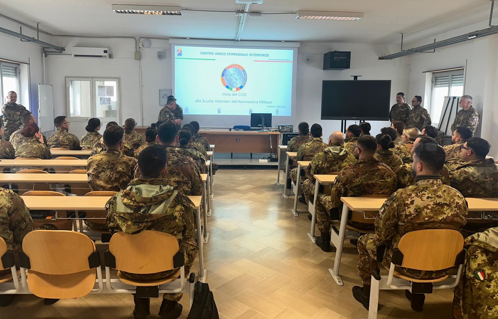 Dopo Mariscuola, la campagna informativa “Impara a conoscere il tuo stipendio” del Centro Unico Stipendiale Interforze (CUSI) ha fatto tappa alla Scuola Volontari dell’Aeronautica Militare.