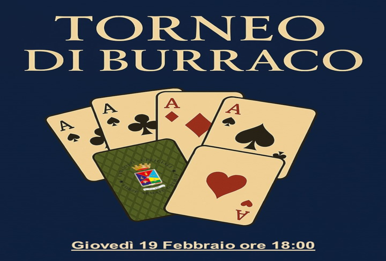 è un piacere comunicarLe che, nell’ambito delle attività culturali e ricreative di questo Circolo, è stato programmato, per il giorno Giovedì 19 Febbraio 2026, un Torneo di "Burraco con premi e cena".