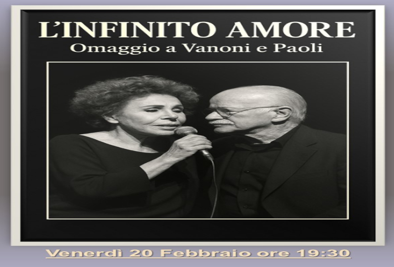 è un piacere comunicarLe che, nell’ambito delle attività culturali e ricreative, questo Circolo ha programmato per il giorno Venerdì 20 febbraio 2026 un concerto dal titolo "L’Infinito Amore" - Omaggio a Vanoni e Paoli. Il concerto è dedicato al repertorio poetico e melodico dei due artisti storici della musica italiana.