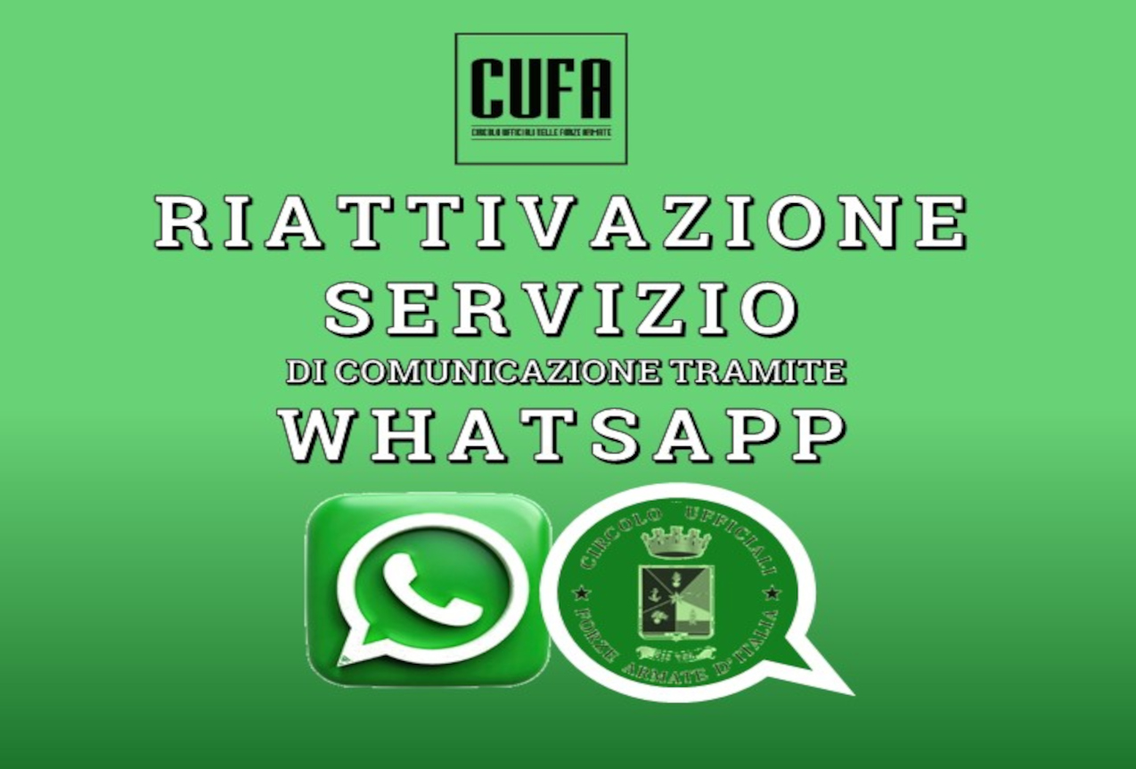 nell’ottica di migliorare le comunicazioni del Circolo Ufficiali delle Forze Armate d’Italia, vi informiamo che il servizio CUFA Whatsapp è stato ripristinato.