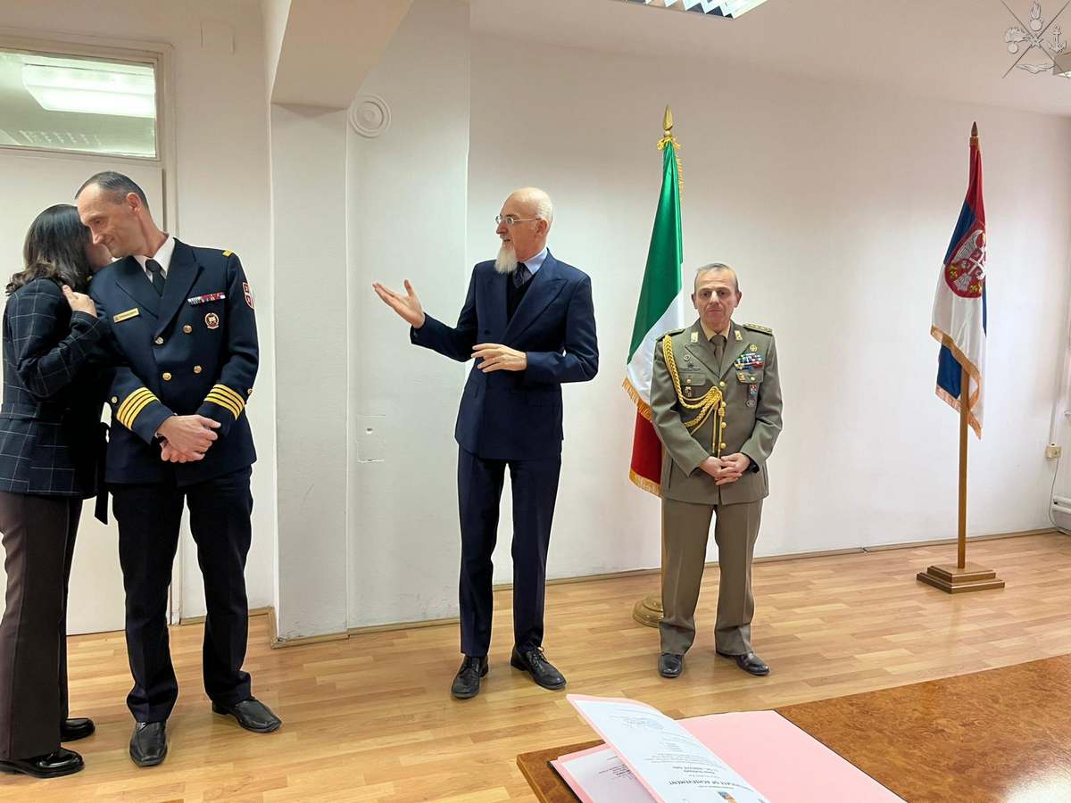 A testimonianza di ciò, la cerimonia di consegna degli attestati è stata presenziata da S.E. l’Ambasciatore Luca Gori che, accompagnato dall’Addetto per la Difesa Colonnello Aurelio Costa ed accolto dal Comandate dell’Accademia delle F.A. serbe Colonnello Dragan Trifković, si è complimentato con i corsisti per gli ottimi risultati raggiunti invitandoli a proseguire la conoscenza della lingua frequentando le numerose iniziative portate avanti dall’Ambasciata e dall’Istituto di Cultura Italiana a Belgrado a favore dei cittadini serbi conoscitori di lingua italiana.