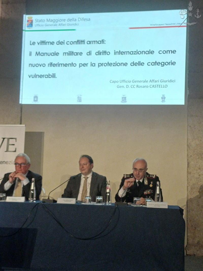 All’evento ha preso parte il Gen. D. CC Rosario Castello, Capo Ufficio Generale Affari Giuridici, che rappresenta lo Stato Maggiore della Difesa in seno alla Commissione Nazionale, con un intervento dal titolo “Le vittime dei conflitti armati: il Manuale militare di diritto internazionale come nuovo riferimento per la protezione delle categorie vulnerabili”.