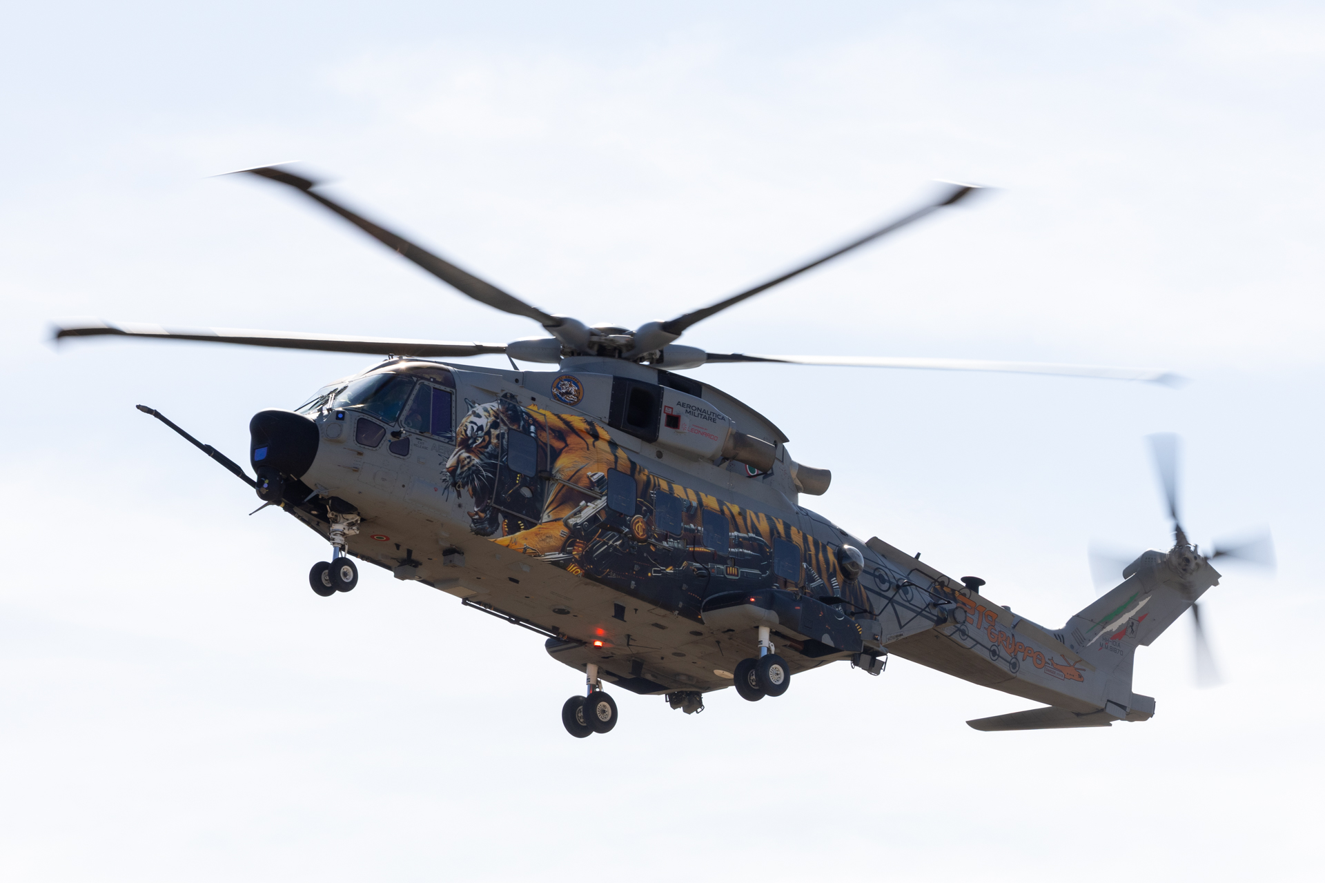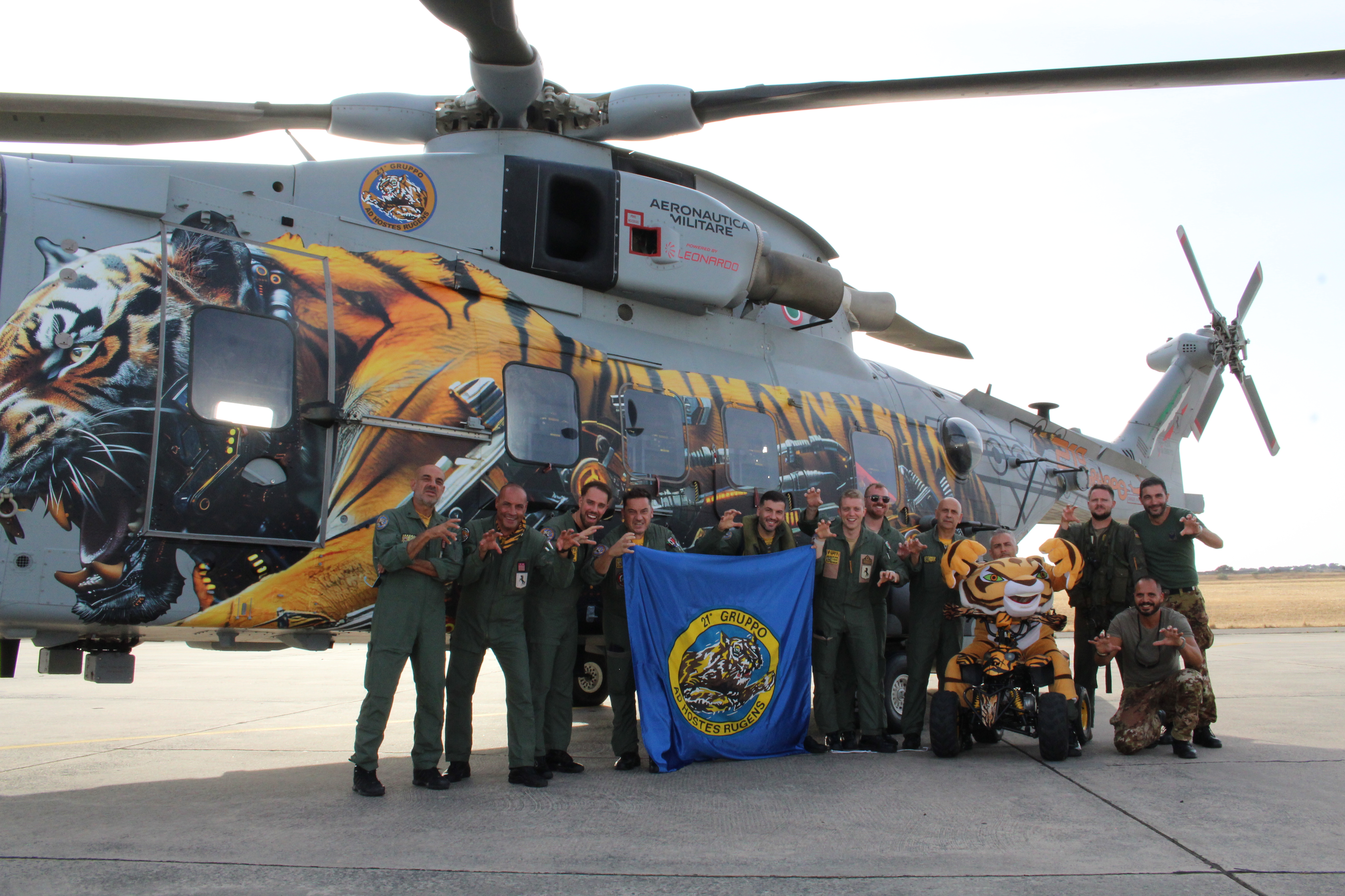 L’esercitazione ha visto la partecipazione, come di consueto, di due prestigiosi gruppi volo dell’Aeronautica Militare, il XII Gruppo Volo del 36° Stormo Caccia di Gioia del Colle (BA) con caccia Eurofighter Typhoon e il 21° Gruppo del 9° Stormo di Grazzanise (CE) con elicotteri HH-101. Tra questi assetti, un velivolo Eurofighter e un elicottero HH-101 nelle versioni Special Color. Tigre bianca, strale e colore verde si sono fusi nell’accattivante grafica della livrea commemorativa che richiama i simboli e i colori della 351ª Squadriglia delle Tigri Bianche di stanza presso la base aerea gioiese, mentre una tigre dai tratti impetuosi ha colorato la fusoliera dell’elicottero di stanza presso la base aerea di Grazzanise.